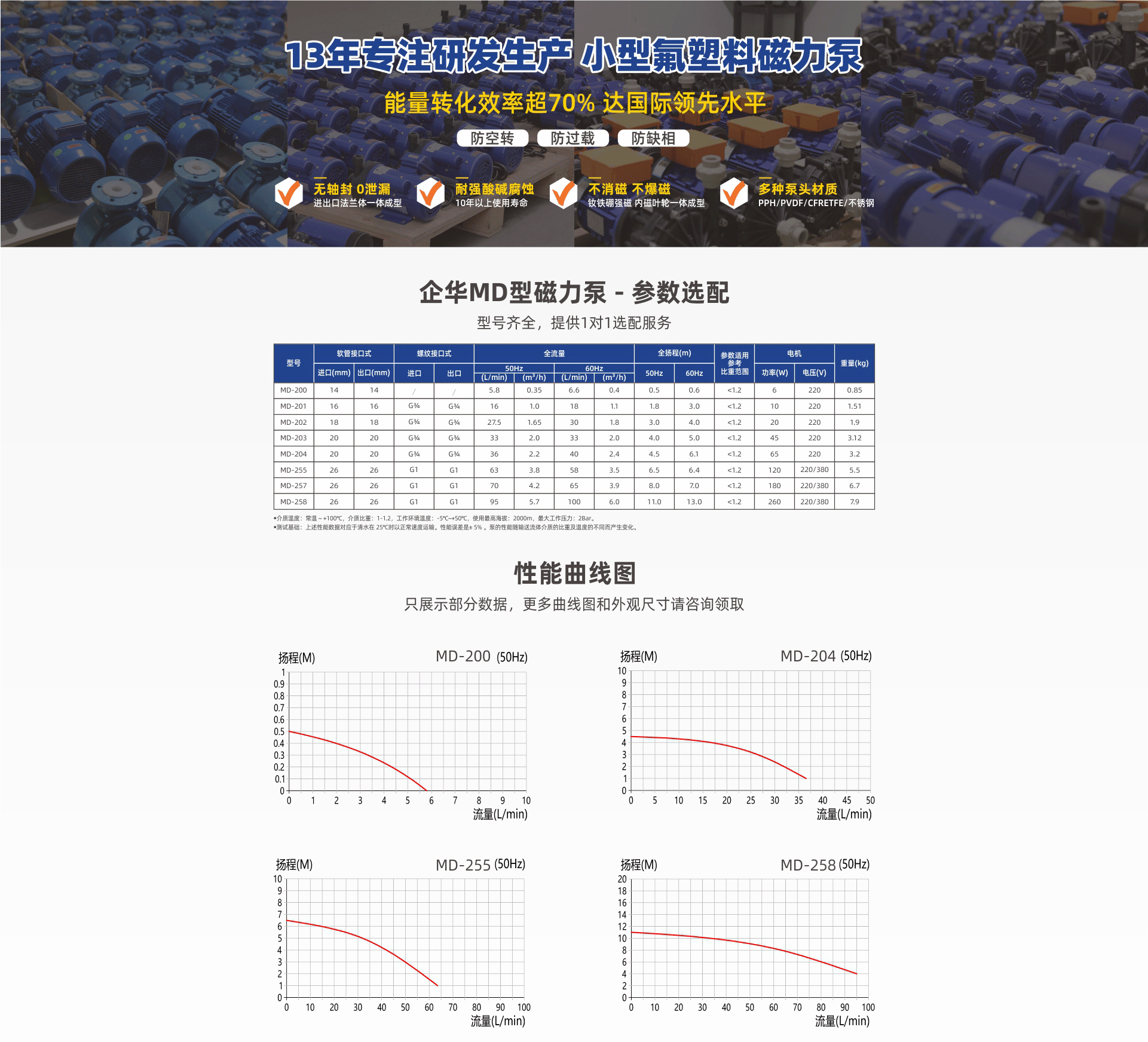 耐強(qiáng)腐蝕,進(jìn)出口法蘭一體成型專利滴水不漏;采用釹鐵硼高效強(qiáng)磁不消磁,內(nèi)磁葉輪一體成型不爆磁;多種泵頭材質(zhì)、體積小、振動小、噪音低、壽命長。